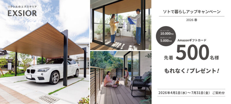 4月1日から7月末までの期間、対象商品をエクステリアマイスター店にてご契約いただいたお客様を対象に