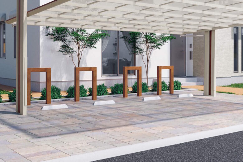 他の車止めポールは、シンプルさや強固さが重視された味気ないデザインのものが多いですが、このタフポールは木目カラーがラインナップされ、ポール形状も4種類展開されるなど、機能面と意匠面のどちらも両立したポールです。街並みや住宅外観にもなじむため、商業施設や公共施設はもちろん、一般住宅の駐車場にも取り入れていただきやすいです。