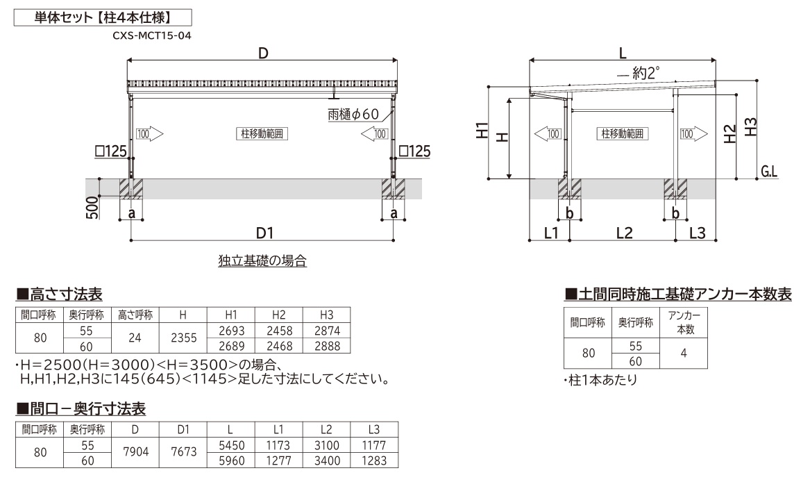 1500タイプは耐積雪50cm仕様です。