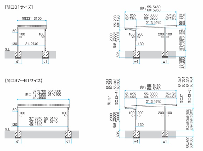 ※標準施工時とは異なる基礎サイズになります。