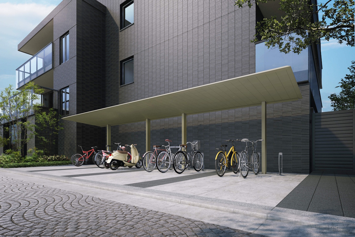 収容台数の多い奥行2連結タイプは、マンションなどの集合住宅や公共施設の駐輪場にもおすすめです。