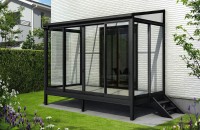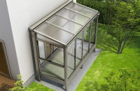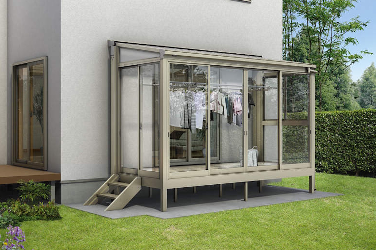 独立施工専用の柱を仕様することで、住宅の外壁に固定せず、自立した新しい構造のテラス囲い。