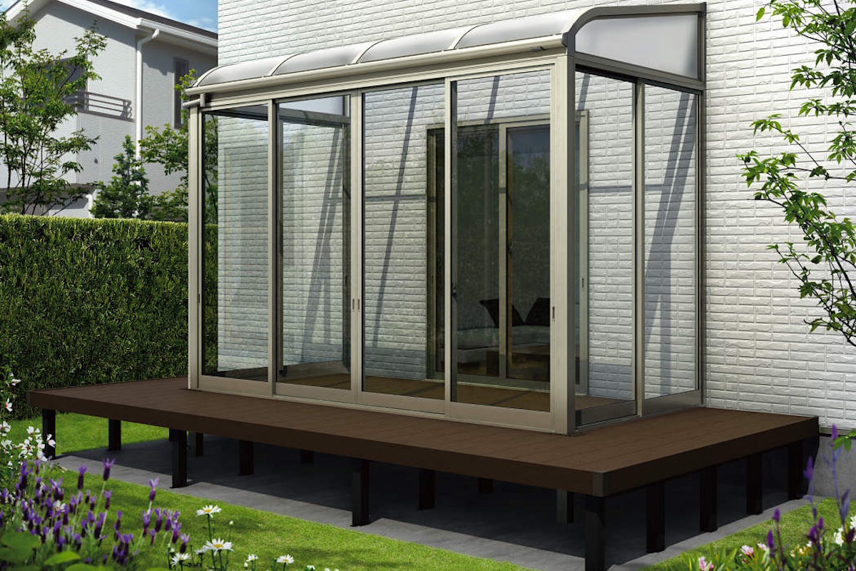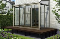 ルーム内に樹脂製デッキまたは人工木デッキ材の床がついているタイプ