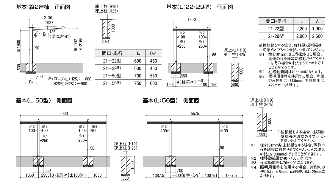 | B | 規格奥行 | L22(2200mm)/L29(2900mm)/L50(5000mm)/L56(5575mm) |