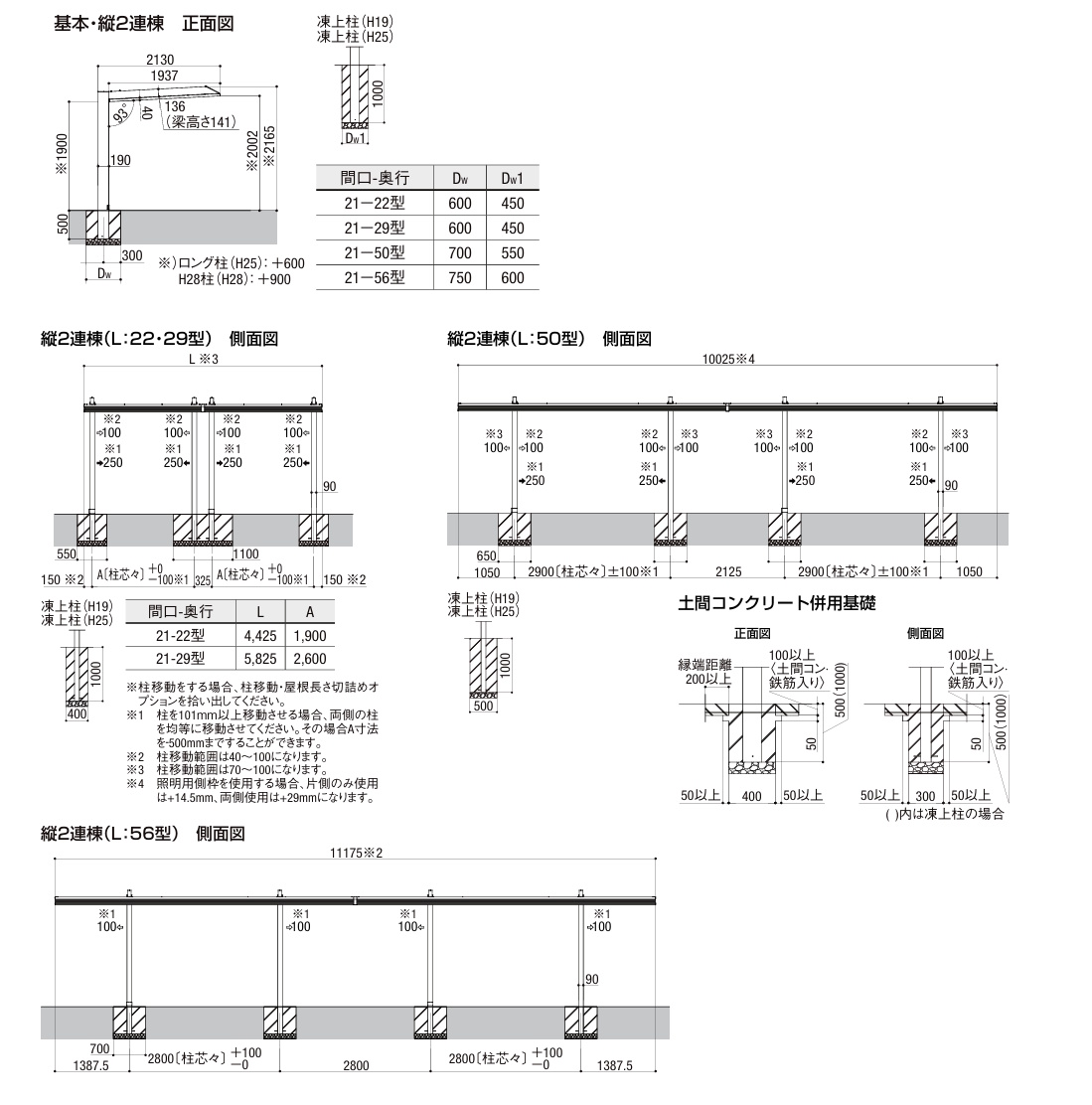 | B | 規格奥行 | L22(4425mm)/L29(5825mm)/L50(10025mm)/L56(11175mm) |