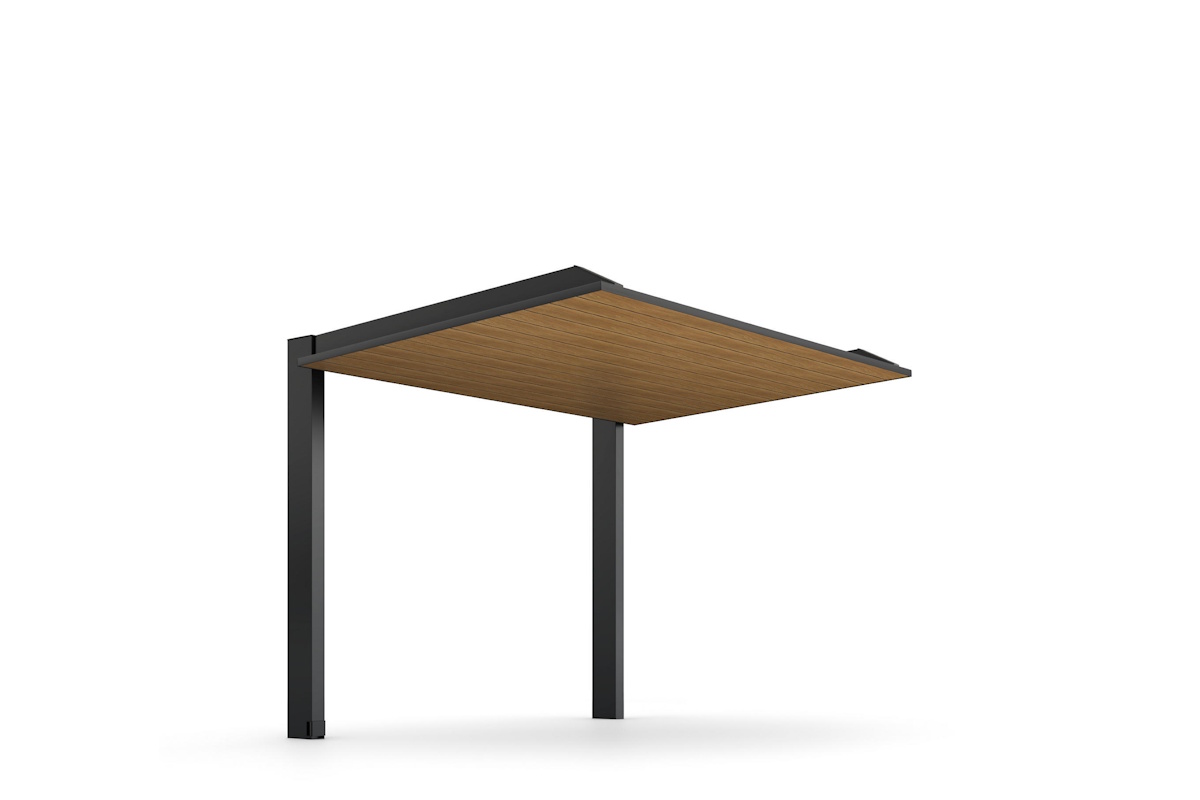 屋根材と柱を異なるカラーで組み合わせることも可能。単色のボリューム感が軽減され、より住宅と調和する”視覚的な軽さ”が生まれます。
