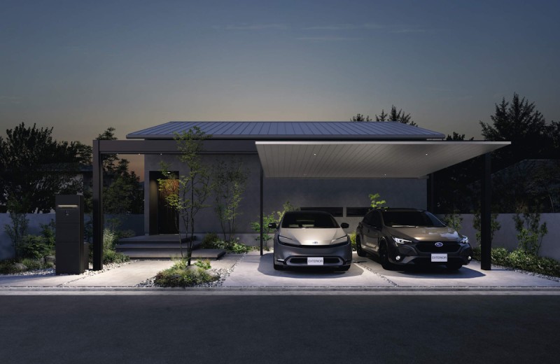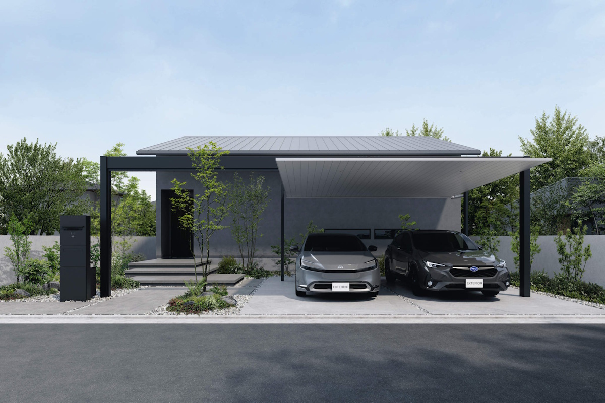 水平ラインにこだわった両側支持仕様は、建物・外構とのラインの揃った、一体感あるエクステリア空間を演出します。