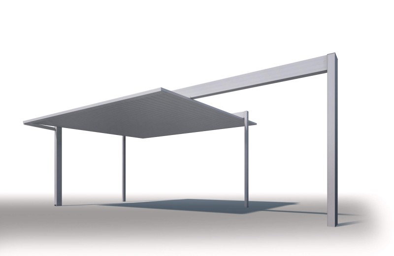 FⅡ両側支持仕様は、上吊り構造で、屋根を上から梁(フレーム)で固定しており、屋根下から見たときにフレームが見えずスッキリとした印象になります。