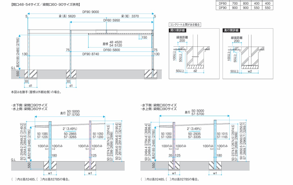 延長梁仕様にすることで敷地対応、デザイン性、使い勝手の好みに合わせたFⅡを設置できるようになります。