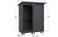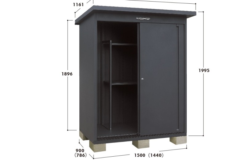| 寸法 | 間口:1500(内寸1440mm) 奥行:900(内寸786mm) 高さ:1995(最高部)、1896(背面側) 屋根部:間口1980×奥行1161 |