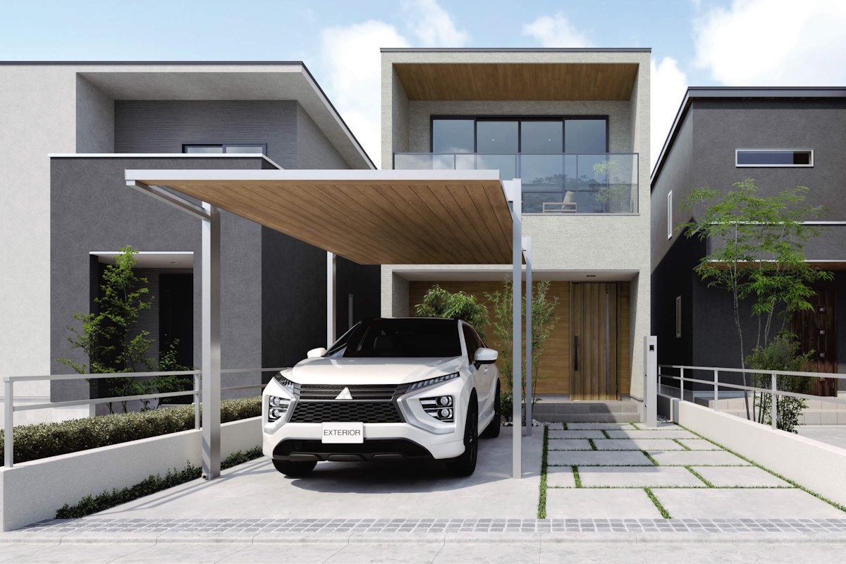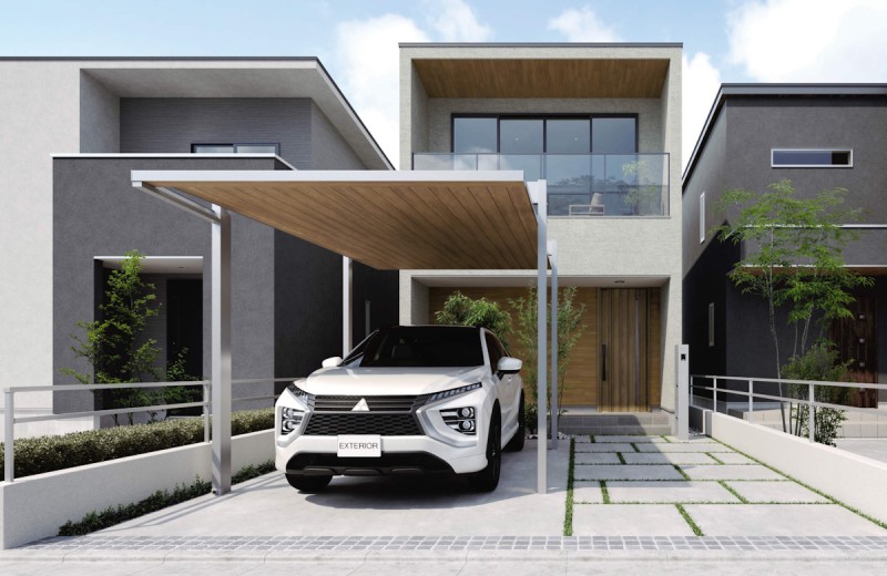 水平ラインにこだわった両側支持仕様は、建物・外構とのラインの揃った、一体感あるエクステリア空間を演出します