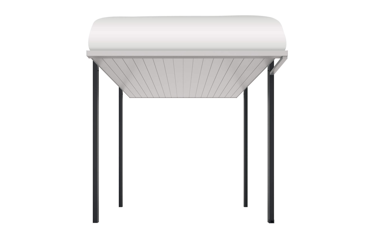 FⅡ両側支持仕様は、上吊り構造で、屋根を上から梁(フレーム)で固定しており、屋根下から見たときにフレームが見えずスッキリとした印象になります。