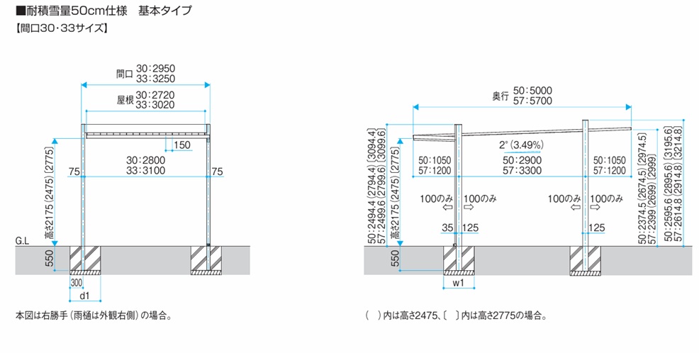 三協アルミ FⅡ-RW(エフツー) 1台用 耐積雪50㎝ 両側支持 基本タイプ
