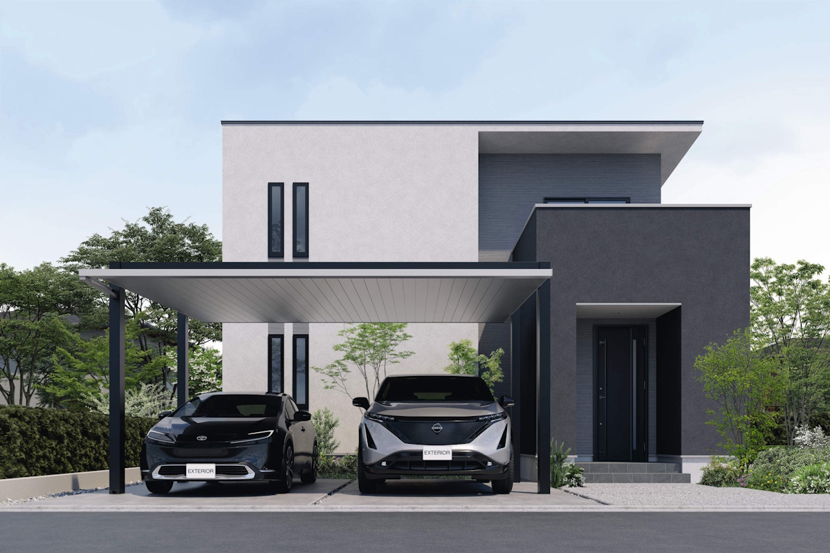 水平ラインにこだわった両側支持仕様は、建物・外構とのラインの揃った、一体感あるエクステリア空間を演出します