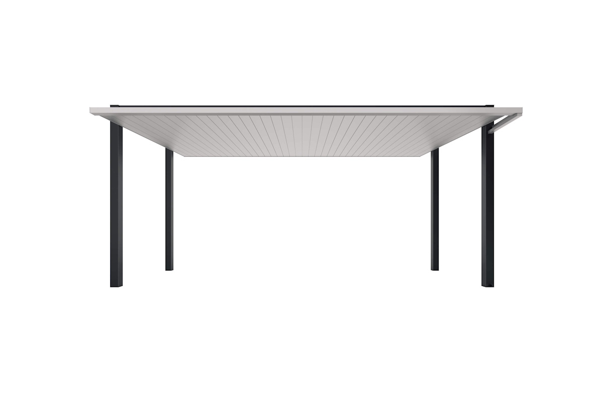 FⅡ両側支持仕様は、上吊り構造で、屋根を上から梁(フレーム)で固定しており、屋根下から見たときにフレームが見えずスッキリとした印象になります。