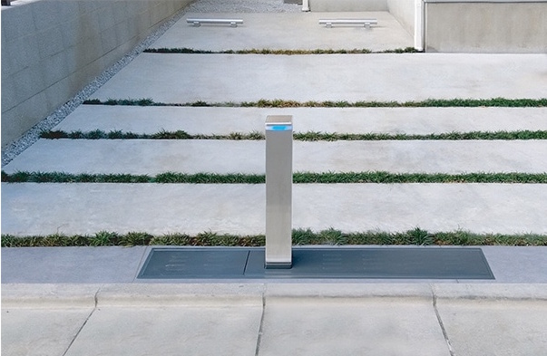 スマートなデザインの埋込式の車庫前バリケードで、住宅や外構のデザインを損ねることなく自動車盗難への対策を強化できます。