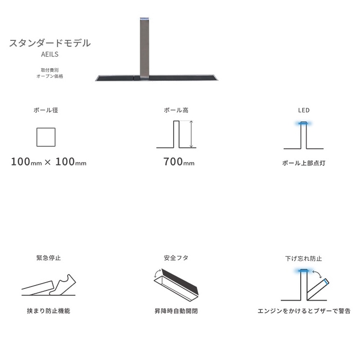 アイシャロックは自宅駐車場に設置する電動式の自動車盗難防止装置です。