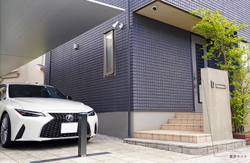 スマートなデザインの埋込式の車庫前バリケードで、住宅や外構のデザインを損ねることなく自動車盗難への対策を強化できます。