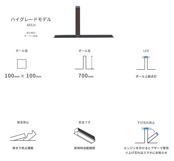 アイシャロックは自宅駐車場に設置する電動式の自動車盗難防止装置です。