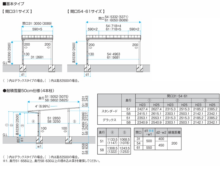 三協アルミ カーポート スカイリードZ スタンダード 1台用 積雪50㎝仕様 両側支持タイプ