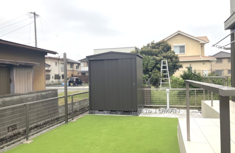 エクステリア.comプラス > 施工事例 > 三重県四日市市 L様邸 マツモト物置 MN-1814 外構 おしゃれ物置 GRCベース 松阪市 津市 鈴鹿市 亀山市 四日市市 桑名市