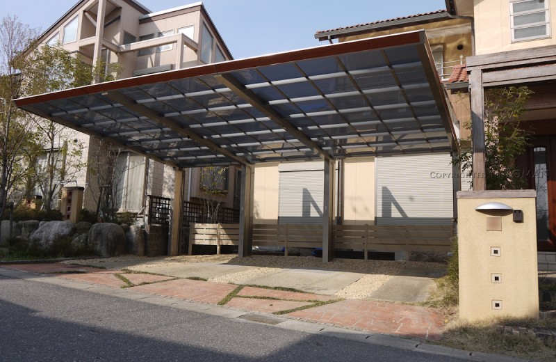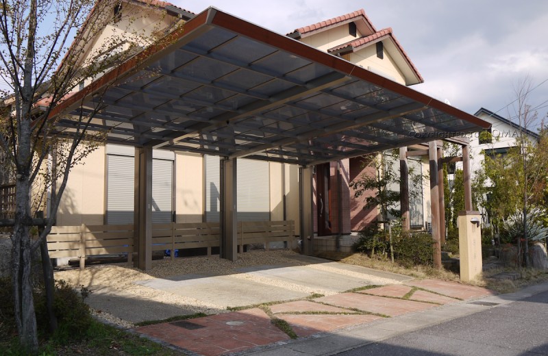 三重県亀山市 N様邸 四国化成 マイポートNext木調3連棟 後方支持カーポート 車庫 外構