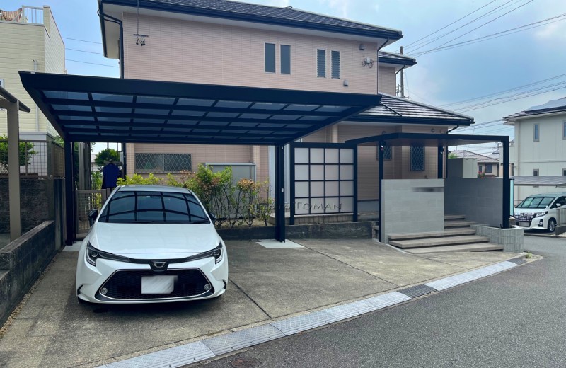 エクステリア.comプラス > 施工事例 > 三重県桑名市 K様邸 四国化成 マイポートNextワイド カーポート 2台用 松阪市 津市 鈴鹿市 亀山市 四日市市