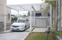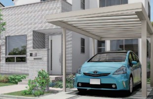 敷地やお庭全体をデザインするリクシル(LIXIL)の「プラスG(Gルーフ):カールーフタイプ」によるカーポートです。上質なエクステリア空間が実現でき、住まいと一体感のあるデザイン性の高いカーポートです。
