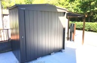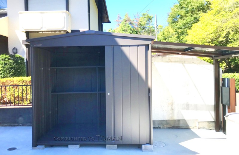 大阪府豊能郡 H様邸 マツモト物置 MN-TERRA2214 1K6S PG色 おしゃれ物置 自転車置き場 自転車倉庫
