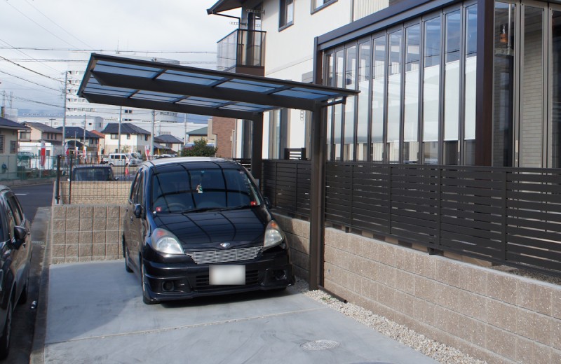 エクステリア.comプラス > 施工事例 > 三重県伊賀市 Y様邸 リクシル フーゴF 1台用 カーポート 外構 車庫 駐車場