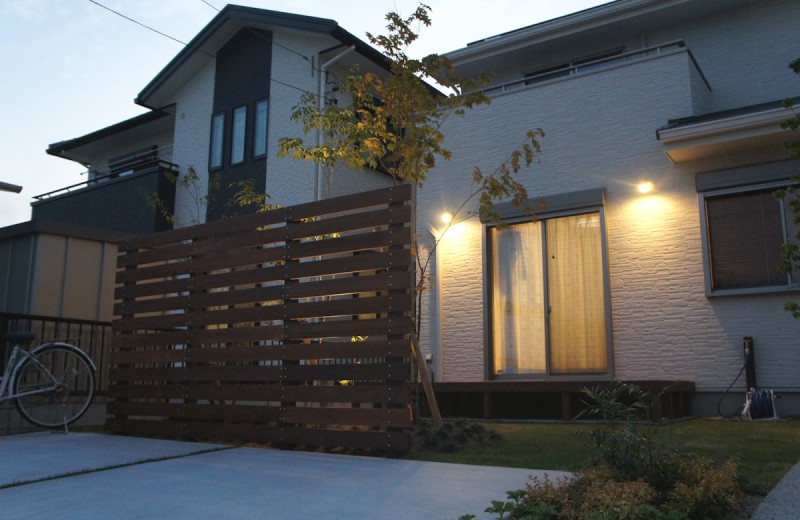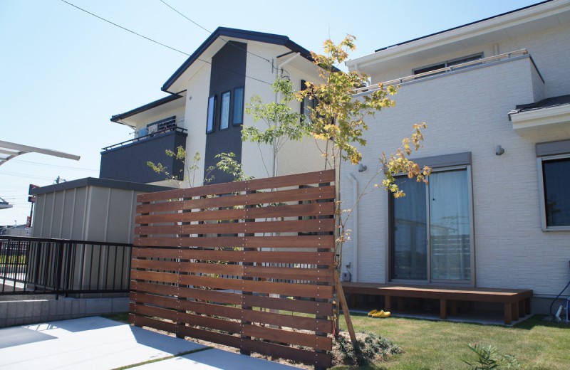 エクステリア.comプラス > 施工事例 > 三重県三重郡 K様邸 天然木ウリンフェンス 目隠しフェンス ウッドフェンス お庭 外構