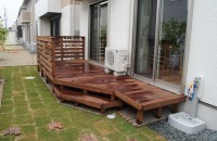 エクステリア.comプラス > 施工事例 > 三重県桑名市 T様邸 天然木ウッドデッキ ウリンデッキ デッキフェンス お庭 外構