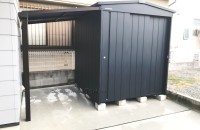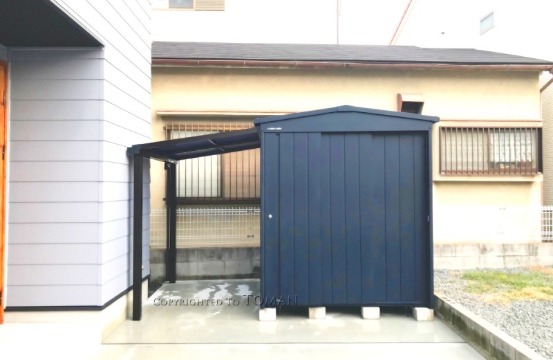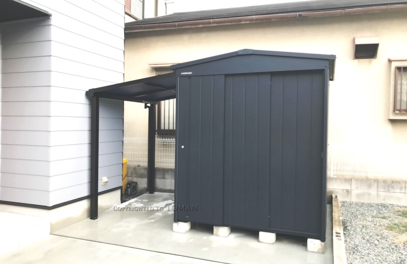 大阪府吹田市 Y様邸 マツモト物置 MN-1818 TERRA BN色 おしゃれ物置 テラス付き 自転車置き場 豊中市 茨木市 箕面市