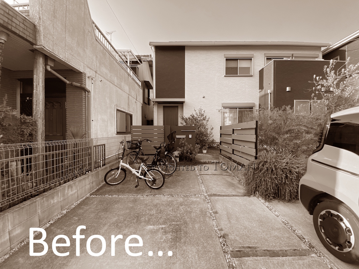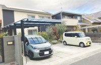 エクステリア.comプラス > 施工事例 > 愛知県名古屋市 S様邸 三協アルミ カーポート スカイリード 1台用 2連棟 新築外構 弥富市 日進市 春日井市 尾張旭市 豊明市