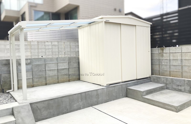 物置までのステップも一緒に施工させていただきました。