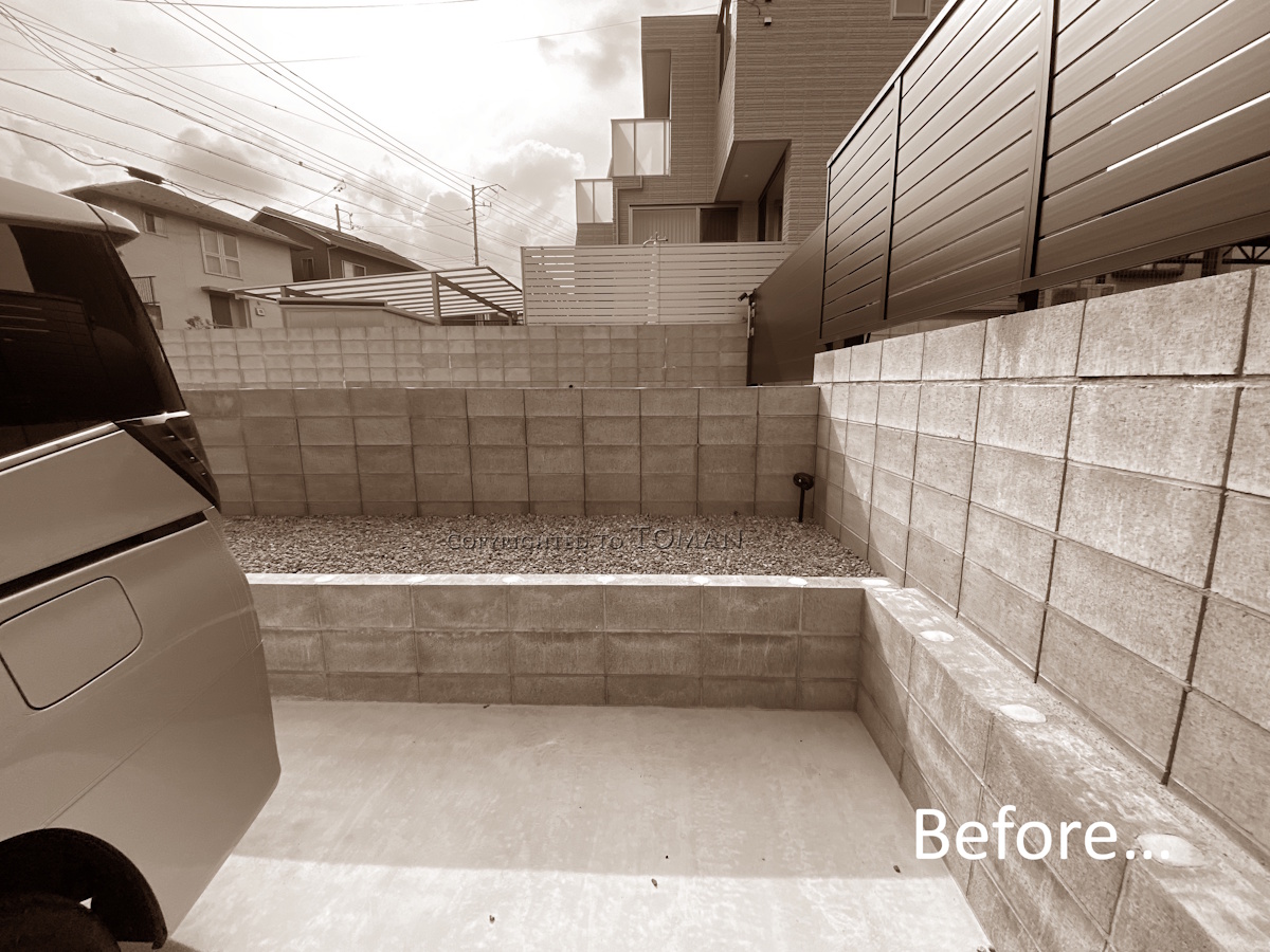 駐車場の隅にマツモト物置を施工させていただきました。
