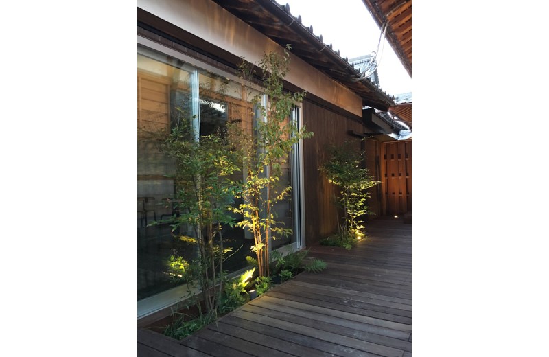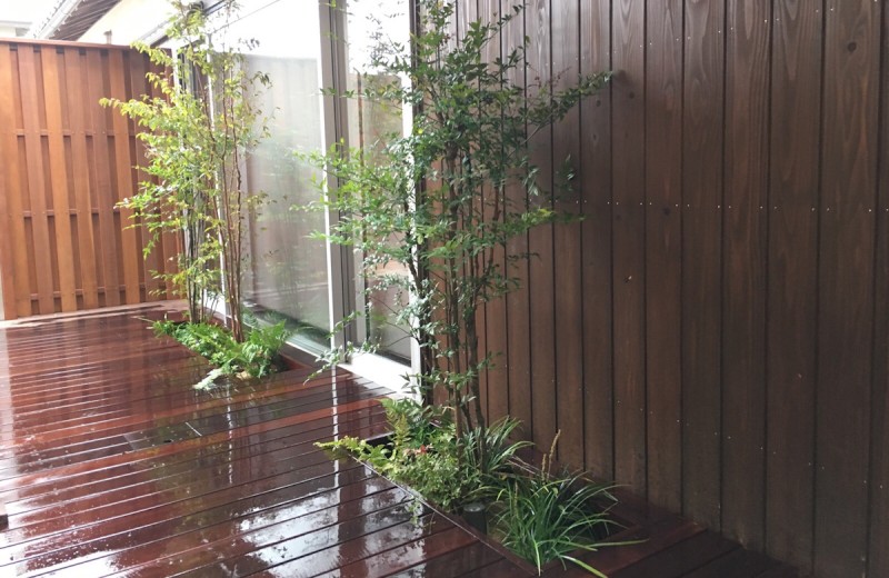 和風建築ですので、彩りとして、デッキの間から、植栽を楽しめる工夫をしております。ナチュラルな雰囲気で、落ち着いた趣になりました。