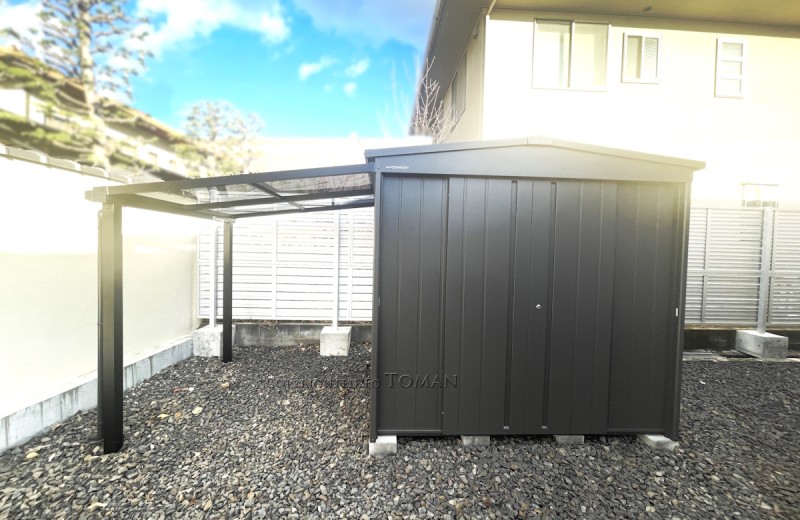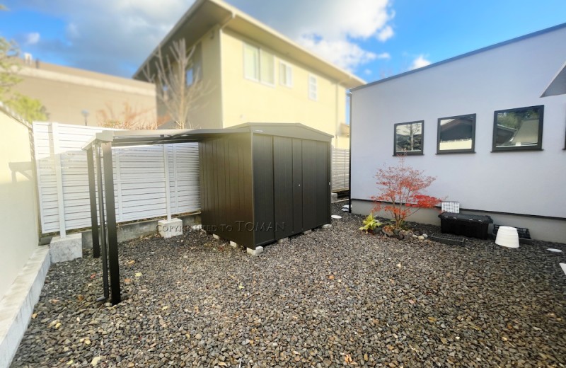 エクステリア.comプラス > 施工事例 > 三重県伊賀市 N様邸 マツモト物置 MN-TERRA2218-1K6S PG色 エクステリア 外構 デザイン物置 おしゃれ物置 お庭