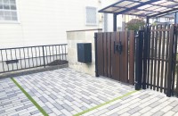 エクステリア.comプラス > 施工事例 > 三重県鈴鹿市 H様邸 リクシル LIXIL 開き門扉AA 両開き 門袖 風に強い