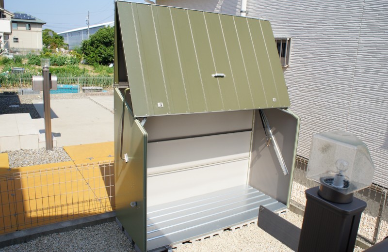 エクステリア.comプラス > 施工事例 > 三重県四日市市 M様邸 メタルシェッド TM3 イギリス製 デザイン物置 自転車倉庫 自転車物置