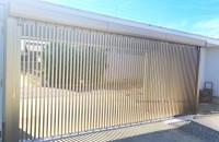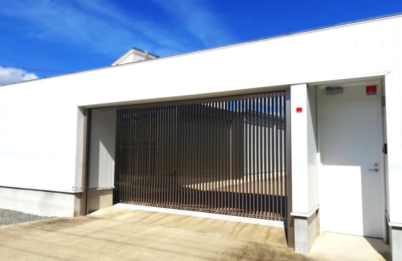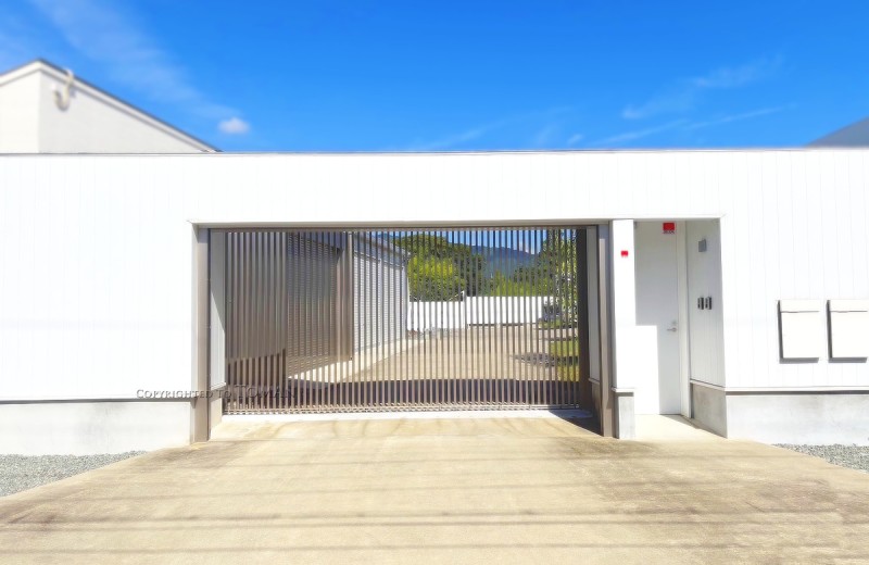 設置スペースのムダを省いたダブルオープンタイプの車庫前ゲート