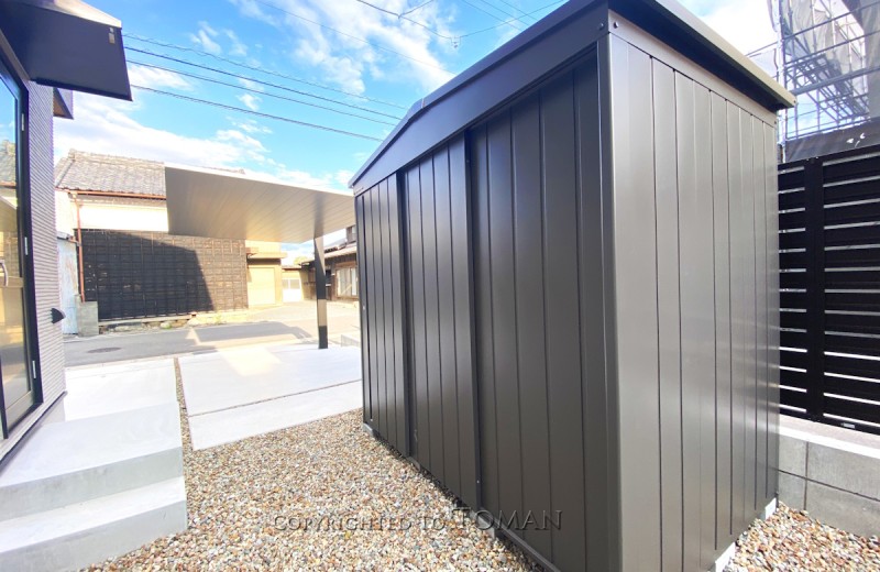 エクステリア.comプラス > 施工事例 > 三重県四日市市 S様邸 マツモト物置 MN-2214 PG色 デザイン物置 おしゃれ物置 エクステリア