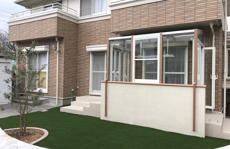 エクステリア.comプラス > 施工事例 > 三重県鈴鹿市 A様邸 LIXILガーデンルーム ココマ 腰壁タイプ サンルーム お庭 外構