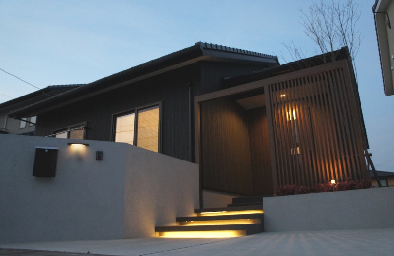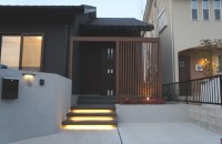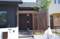 エクステリア.comプラス > 施工事例 > 三重県亀山市 O様邸 リクシルプラスG Gスクリーン フレーム+縦格子タイプ 玄関目隠し 新築外構