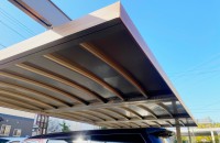 三協アルミのカーポート「Uスタイルアゼスト」は、重厚感のある屋根デザインと、高い敷地対応力が特徴のスタイリッシュなカーポートです。
