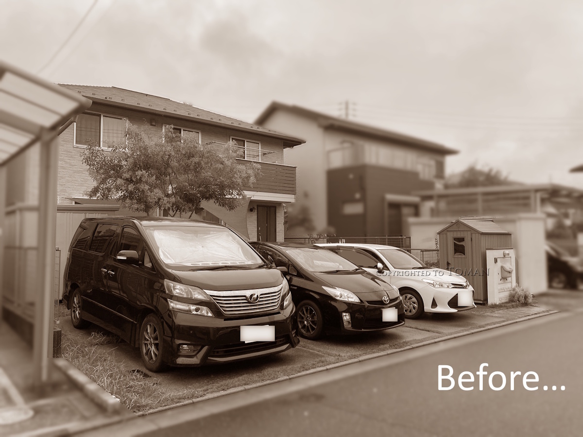 三重県桑名市 I様邸 三協アルミ U.スタイル アゼスト 吊り下げ カーポート 3台用 外構 駐車場 車庫