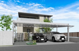 エクステリア.comプラス > 施工事例 > 三重県四日市市 T様邸 リクシル アーキフィールド 3台用 カーポート 駐車場 車庫 外構
