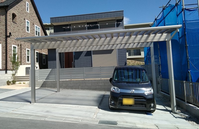 エクステリア.comプラス > 施工事例 > 三重県四日市市 H様邸 YKKap エフルージュツイン50 カーポート 2台用 駐輪場 車庫 外構
