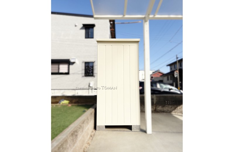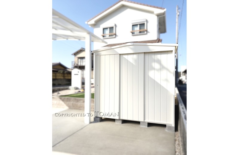 三重県津市 M様邸 マツモト物置 MN-2210 GW色 おしゃれ物置 スチール物置 お庭 外構