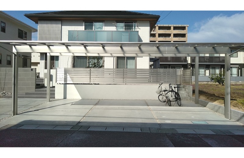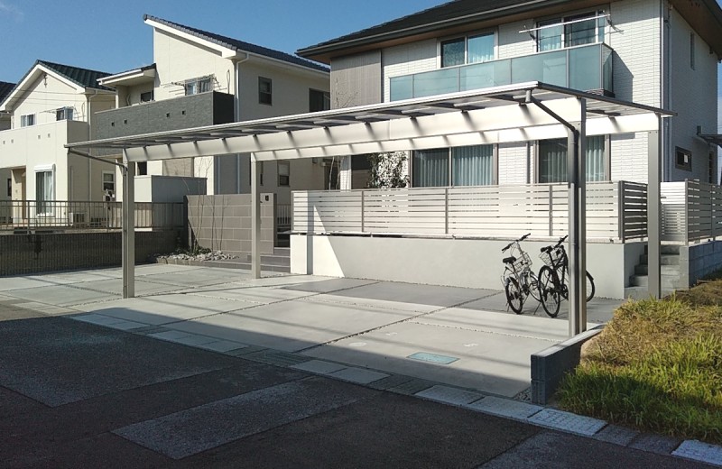 エクステリア.comプラス > 施工事例 > 三重県鈴鹿市 K様邸 YKKap エフルージュ 3台用 カーポート 駐車場 車庫 新築外構